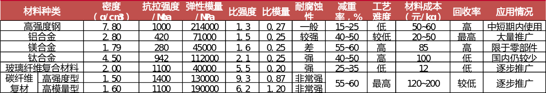 碳纤维和其他材料性能对比