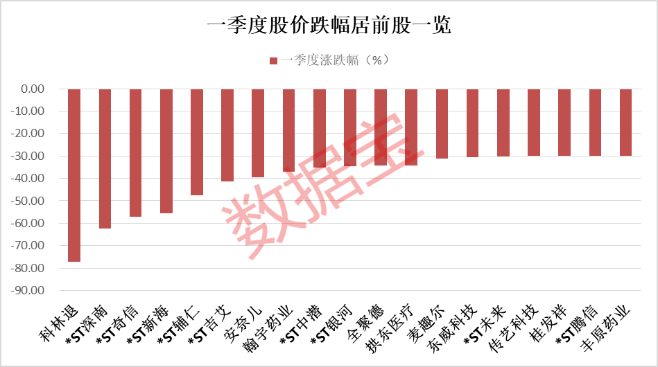 踢除ST股和退市股,安奈儿跌幅最大,一季度累计下跌39.55%。此前,因炒作抗病毒面料技术,公司股价大涨,高峰时曾连获7个涨停,被市场称为抗菌面料“妖股”。今年以来,因关于抗病毒抗菌面料信披不完整,安奈儿多次收到监管部门下发的关注函和警示函,同时公司减持公告频发对股价也形成利空,公司股价于1月12日高位转头向下,开启连续下挫模式。