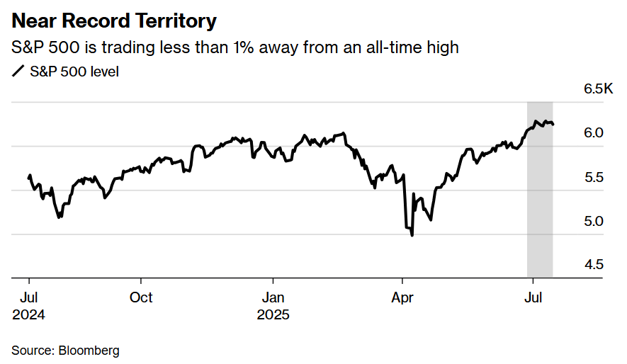 仍然处于创纪录高位附近——标普500指数目前距离历史最高点不到1%