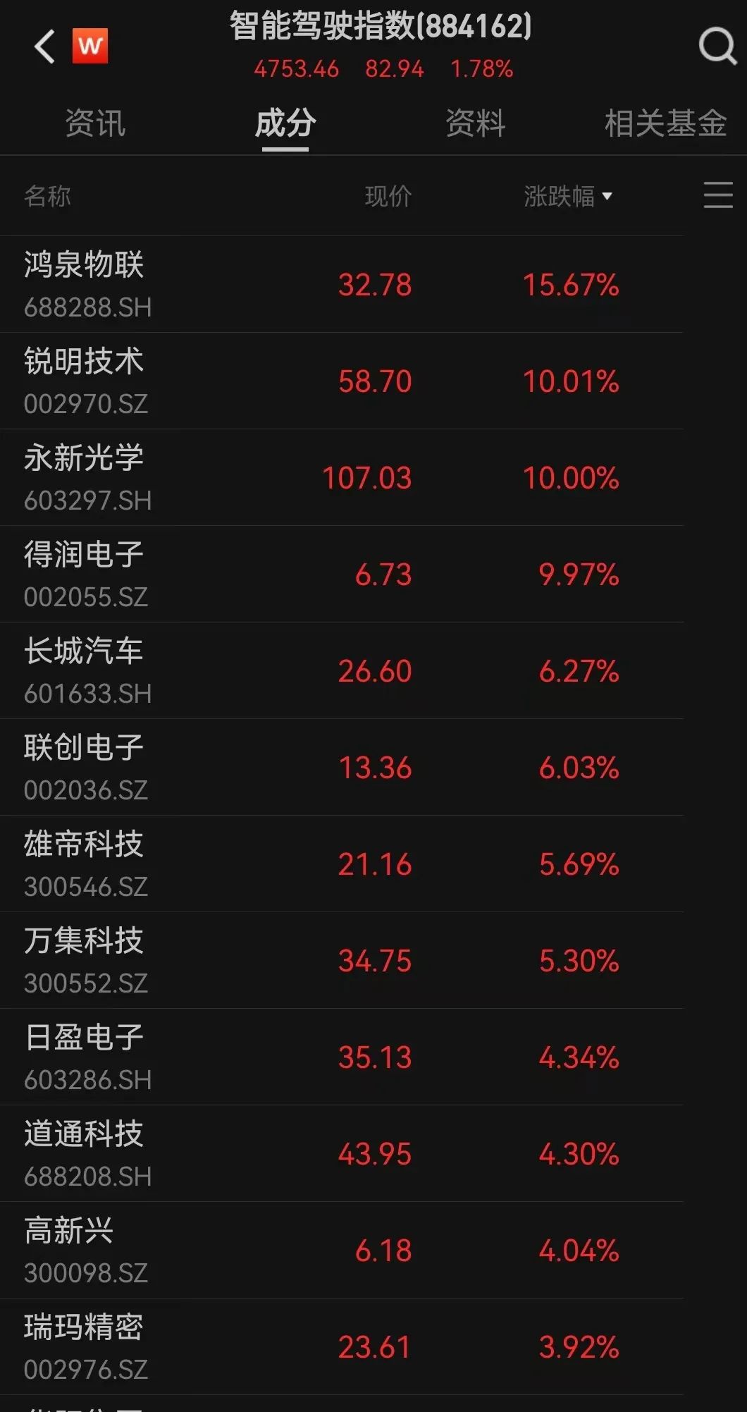 A股和港股市场智能驾驶和雷达赛道多只股票大幅走强,成为上午市场一大亮点。