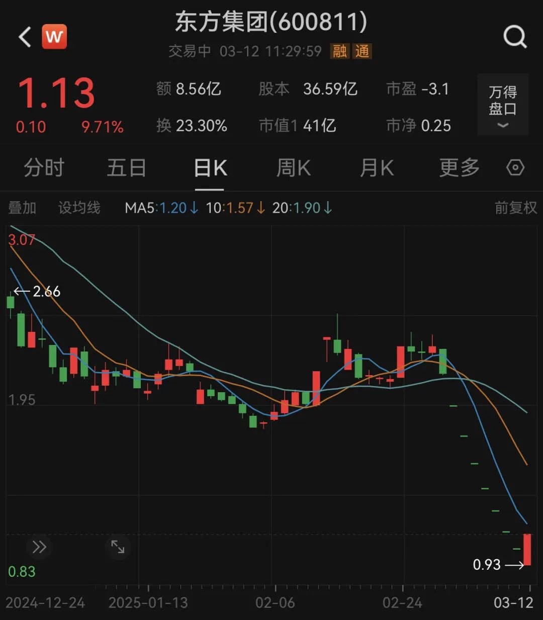 东方集团今日早盘走出“地天板”走势,此前已经连续7个交易日跌停。