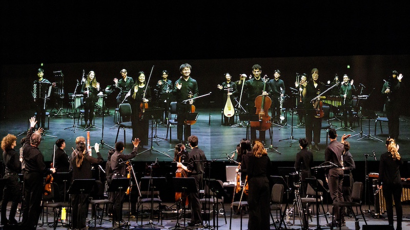 身在茱莉亚学院美国纽约和中国天津两个校区的学生,相隔8000多英里,首次进行实时合作表演作曲家特里·赖利创作于1964年的极简主义作品《C音》。这次跨学科的合作呈现了奇妙的场景,两位分隔两地的钢琴演奏者与合奏团仿佛是肩并肩合作,舞者的身影则在数字化背景中出现,呈现出沉浸式的非凡体验。