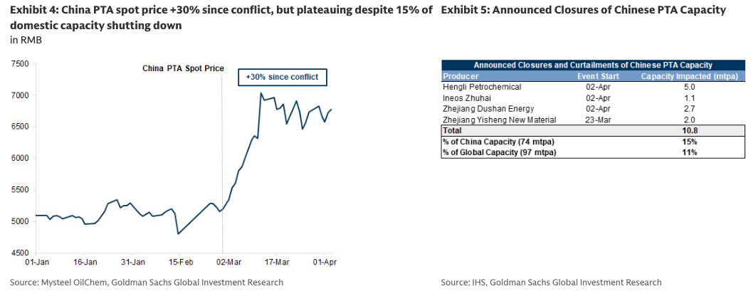 高盛分析师Georgina Fraser率领的团队周一警告客户,亚洲地区的石化冲击正在加剧,纺织和包装工厂已成为首批遭受重创的下游企业。