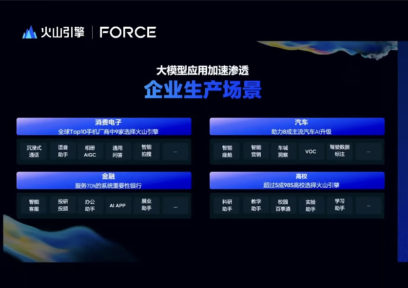此次豆包系列模型价格降低的原因包括客户对Tokens调用规模快速增长、模型能力的快速提升、新场景被不断解锁等。以Tokens数量为例,对比今年5月火山引擎Tokens消耗构成和去年12月的数据,随着深度推理模型的发布,AI工具的Tokens消耗在快速增长,五个月时间增长了4.4倍,其中AI搜索增长了10倍,AI编程增长了8.4倍。