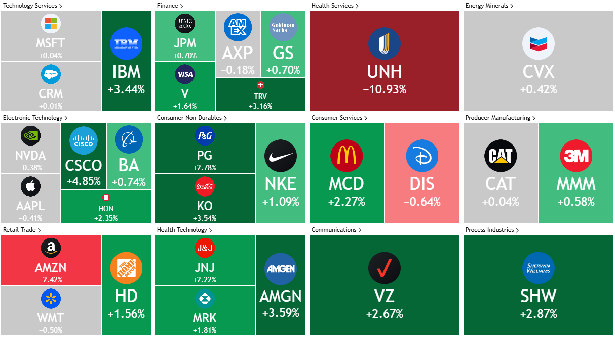 道指成分股中,涨跌家数为23:7。其中,近期强势的亚马逊、苹果和英伟达有所回落,医药股和消费类股票走强,安进涨3.59%,可口可乐涨3.54%,业绩报喜的思科涨4.85%。