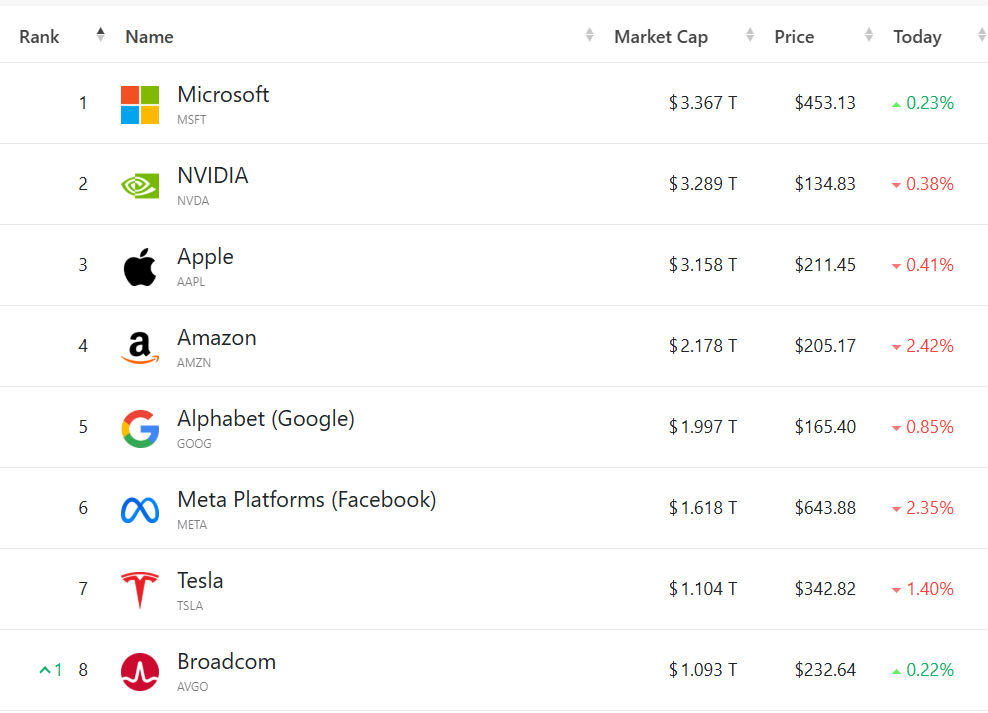 大型科技股整体回落,(按市值排列)微软涨0.23%,英伟达跌0.38%,苹果跌0.41%,亚马逊跌2.42%,谷歌C跌0.85%,Meta跌2.35%,特斯拉跌1.4%,博通涨0.22%。