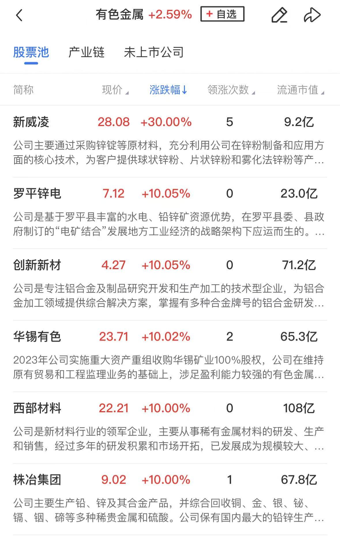板块上,有色金属概念股走强,罗平锌电、华锡有色、华钰矿业、华阳新材等个股涨停。湖南黄金、中钨高新、神火股份、豫光金铅等个股涨幅居前。