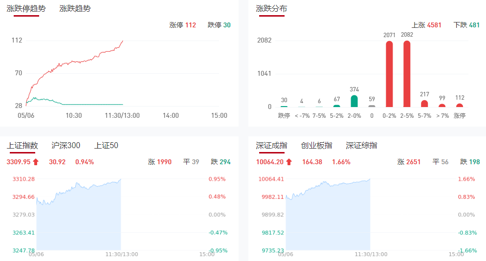 午评:创业板指半日涨2% 全市场超4800股上涨