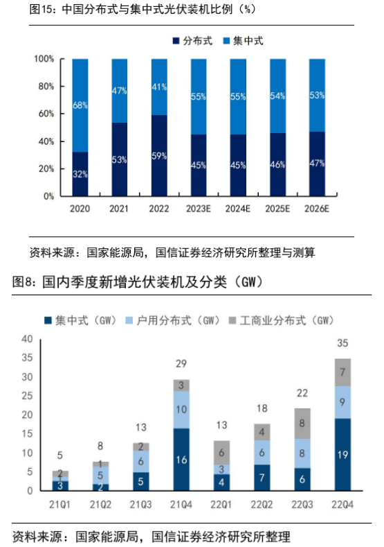 (1)过去:跟踪支架渗透率相对较低,主要原因是:跟踪支架作为新技术,市场培育需要时间;国内业主方以国企为主,国企对项目IRR的追求相对较低,但对稳定性的要求相对较高,因此对新技术的接受速度相对较慢。