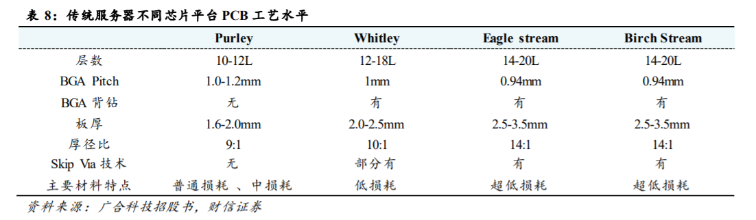 HDI需求有望井喷。HDI主要采用激光打孔技术对积层进行打孔导通,主要以埋孔、盲孔的方式来实现层间连接,相较于传统PCB的通孔,可以释放出更多空间用于布线,提高布线密度,同时也能够满足AI服务器的高频高速、高稳定性和可靠性等要求。英伟达GB200NVL72大量采用HDI设计,下一代产品GB300有望该沿用设计,而其他ASIC服务器亦有望积极跟进,采用更加高端的PCB方案。从价值量来看,HDI阶数越高,钻孔压合次数越多,对生产的工艺和技术要求也越高,所以HDI整体价值量也较高。