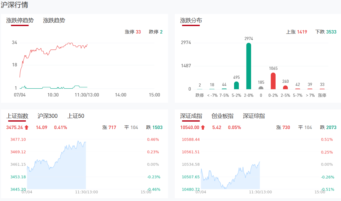 午评:沪指半日涨0.41% 数字货币板块涨幅居前