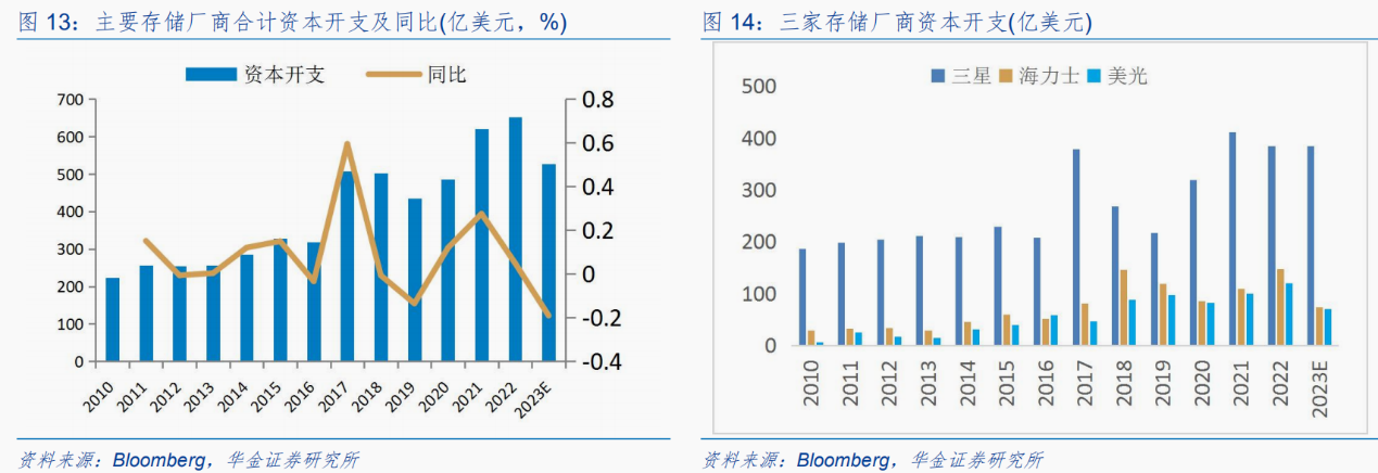存储行业的周期变化本质由供需情况决定。供给端,海力士和美光宣布2023年资本开支均大幅下修50%、30%,分别为74亿美元、70亿美元,低于2020年的水平。西部数据2月宣布将NAND闪存晶圆产量减少30%。此外,铠侠从2022年10月起开始减产,晶圆投入量也减少30%。2022年NAND供需差占需求的比例约9%,DRAM供需差占需求的比例约8%,国金证券测算,随着物联网(IoT)、智能汽车、工业机器人、AI算力提升带动以及ChatGPT催化提升存储需求,2023年NAND供需差占需求的比例将下降到3.9%,DRAM供需差占需求的比例将下降到7%,供过于求的情况均有缓解,NAND厂商库存更早见顶迎来拐点。。