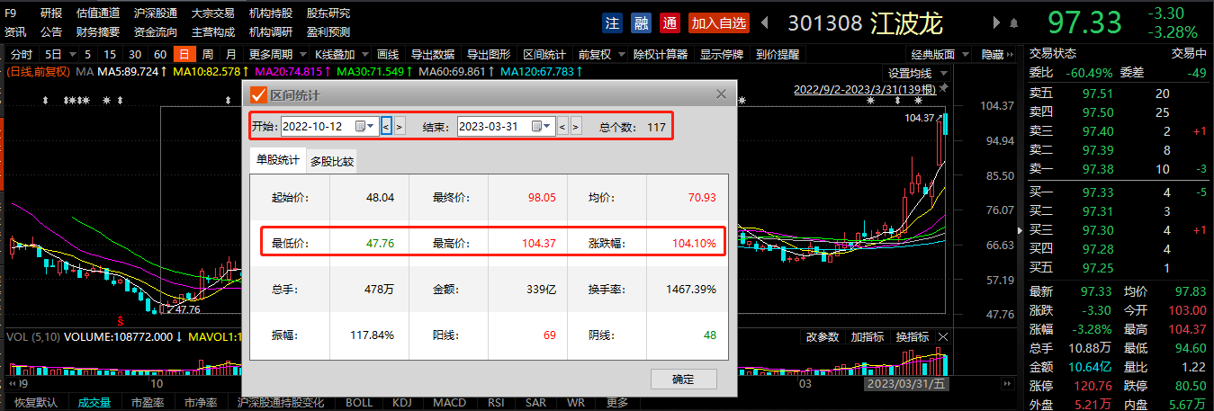 二级市场方面,拥有嵌入式存储、固态硬盘(SSD)、移动存储及内存条四大产品线的综合性半导体存储巨头江波龙股价自去年10月12日迄今累计最大涨幅达119%。