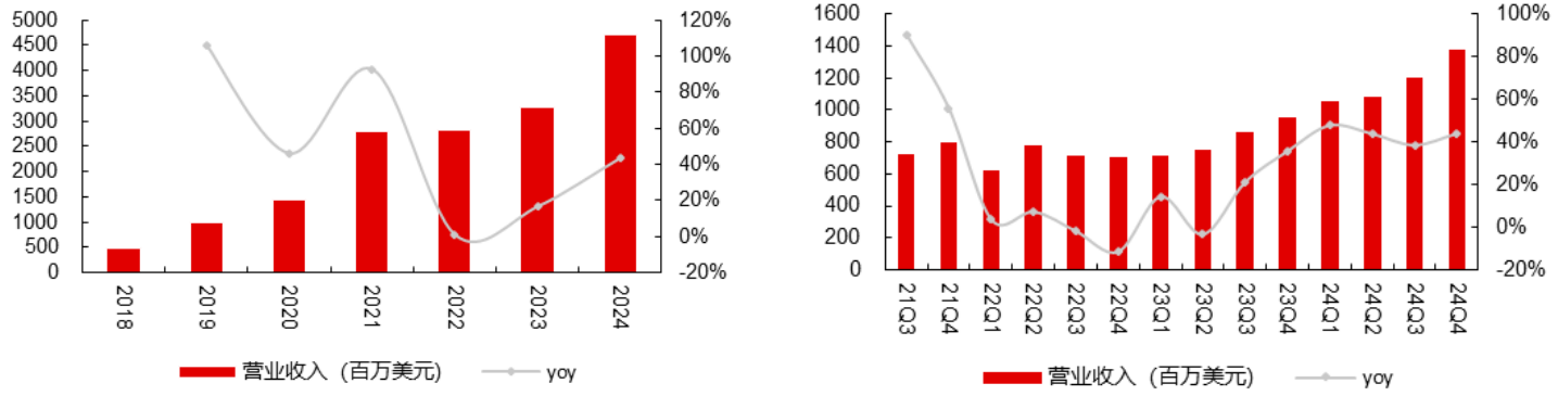 23Q1以来公司毛利率保持增长,从23Q1的63.4%增长至24Q4的76.7%。同时,公司费用控制成效显著,销售费用率、研发费用率、管理费用率从22Q1的46.4%、20.2%、8.8%下降至24Q4的15.6%、12.3%、4.4%。