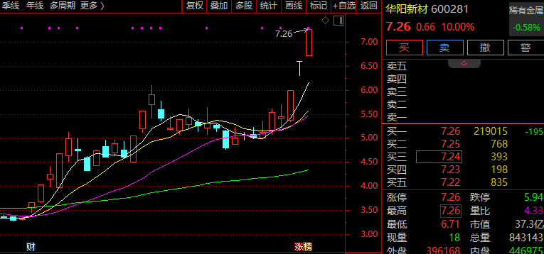 稀土永磁概念反复活跃,华阳新材走出3连板,此前北矿科技走出4连板,宁波韵升触及涨停,奔朗新材、德宏股份、龙磁科技、英洛华等跟涨。