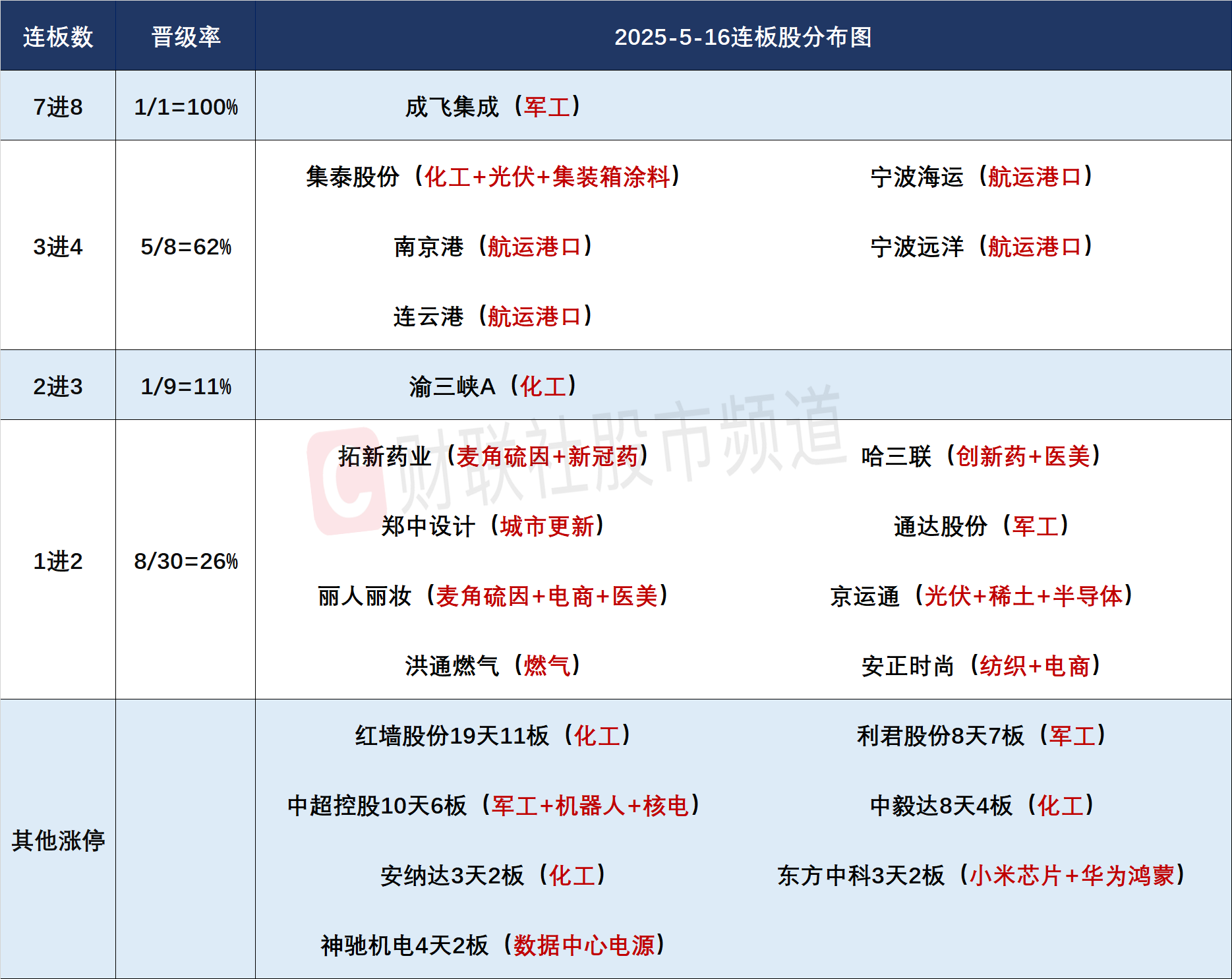 5月16日连板分析:8连板!成飞集成一枝独秀