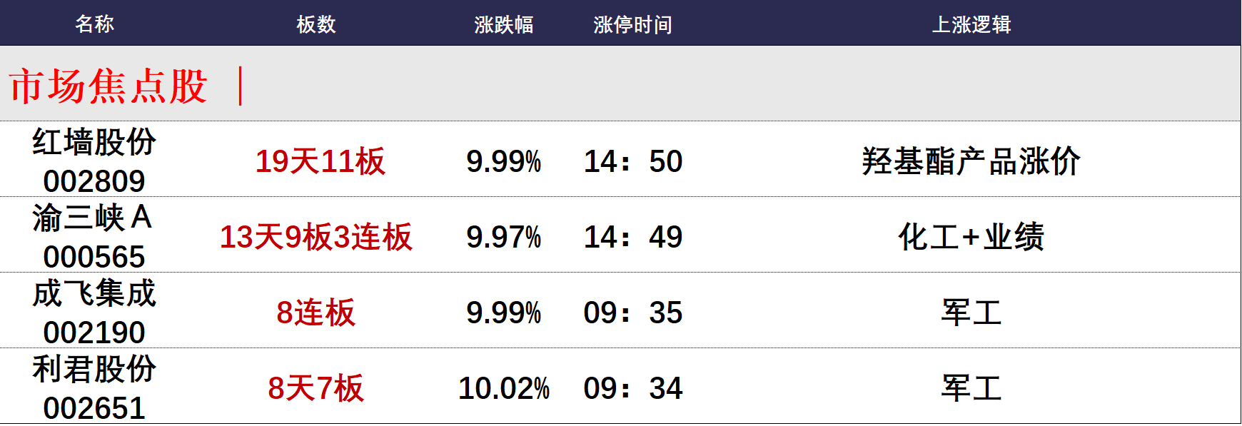 个股方面,全市场超3000只个股上涨,高位股强者恒强,成飞集成晋级8连板,继续拓展市场连板高度,渝三峡A走出14连阳,累计涨超170%,此外红宝丽、利君股份、红墙股份、中毅达均反包涨停,中旗新材一度封板再创历史新高。