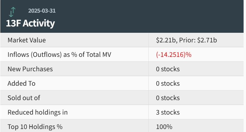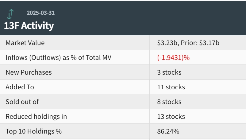 整体而言,一季度景林持仓总市值从上季末的31.7亿美元增至32.3亿美元,增持或新建仓14只股票,减持或清仓21只股票,前十大仓位集中度达到86.24%。