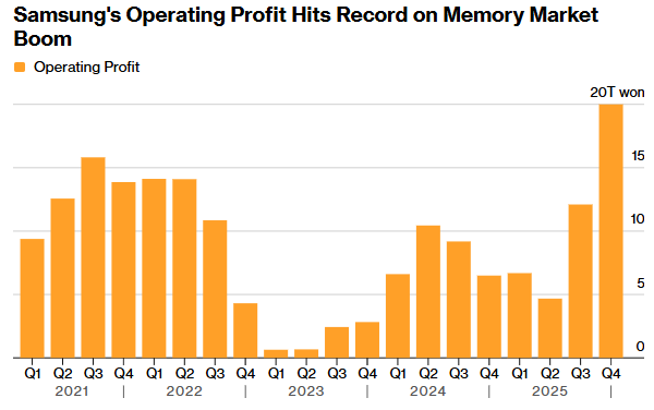 AI催生“内存荒” “存储涨价潮”引爆三星Q4业绩:营业利润同比增208% 携营收齐创新高