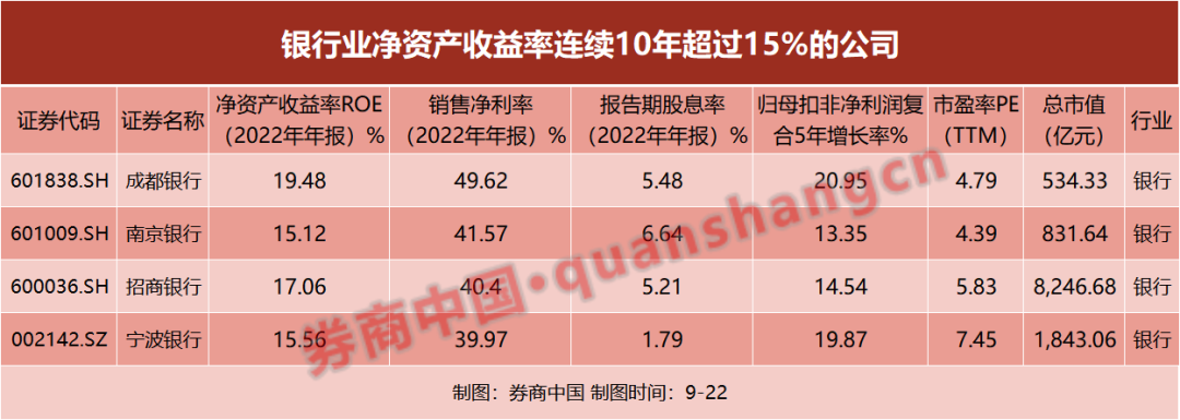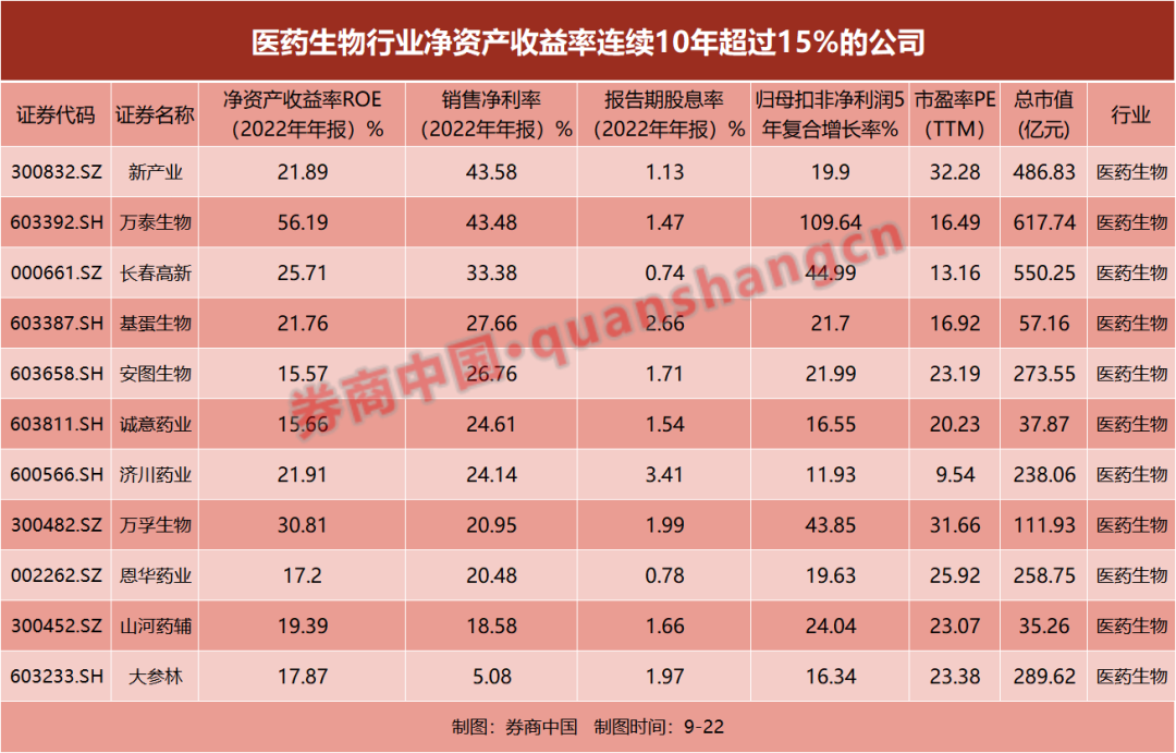 医药生物和银行业也是护城河比较高的行业。招商银行、南京银行和成都银行等公司净资产收益率连续十年超过15%,这些公司还拥有超过5%的股息率和较低的估值。具有独家品种的生物医药行业的净资本回报率和成长性都比较好,但独家大单品也是医药类公司不稳定的来源,一旦竞争对手突破壁垒将对公司的股东回报产生较大的影响,医药生物更适合专业投资者投资。