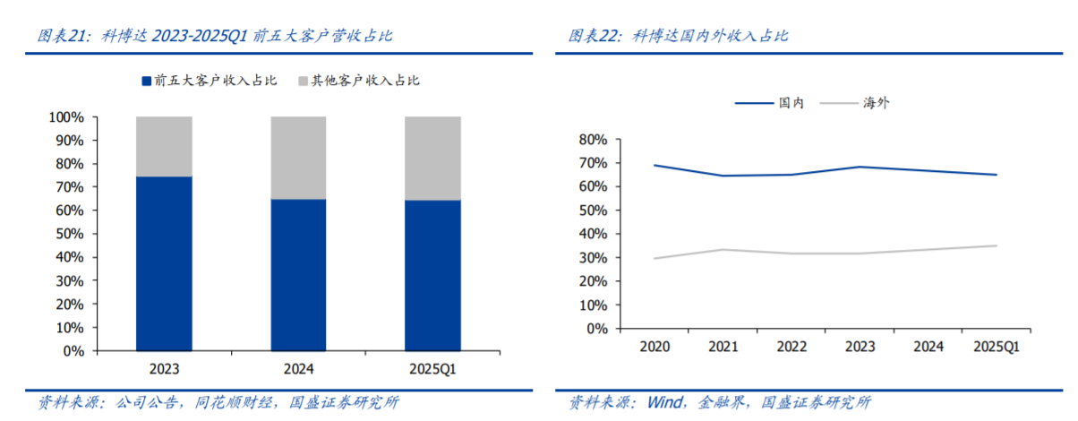公司国内和海外收入情况:2024年度,公司主营收入57.60亿元,其中国内销售38.39亿元,占主营业务收入的66.65%,同比增长26.48%;国外销售19.21亿元,占主营业务收入的33.35%,同比增长32.14%。