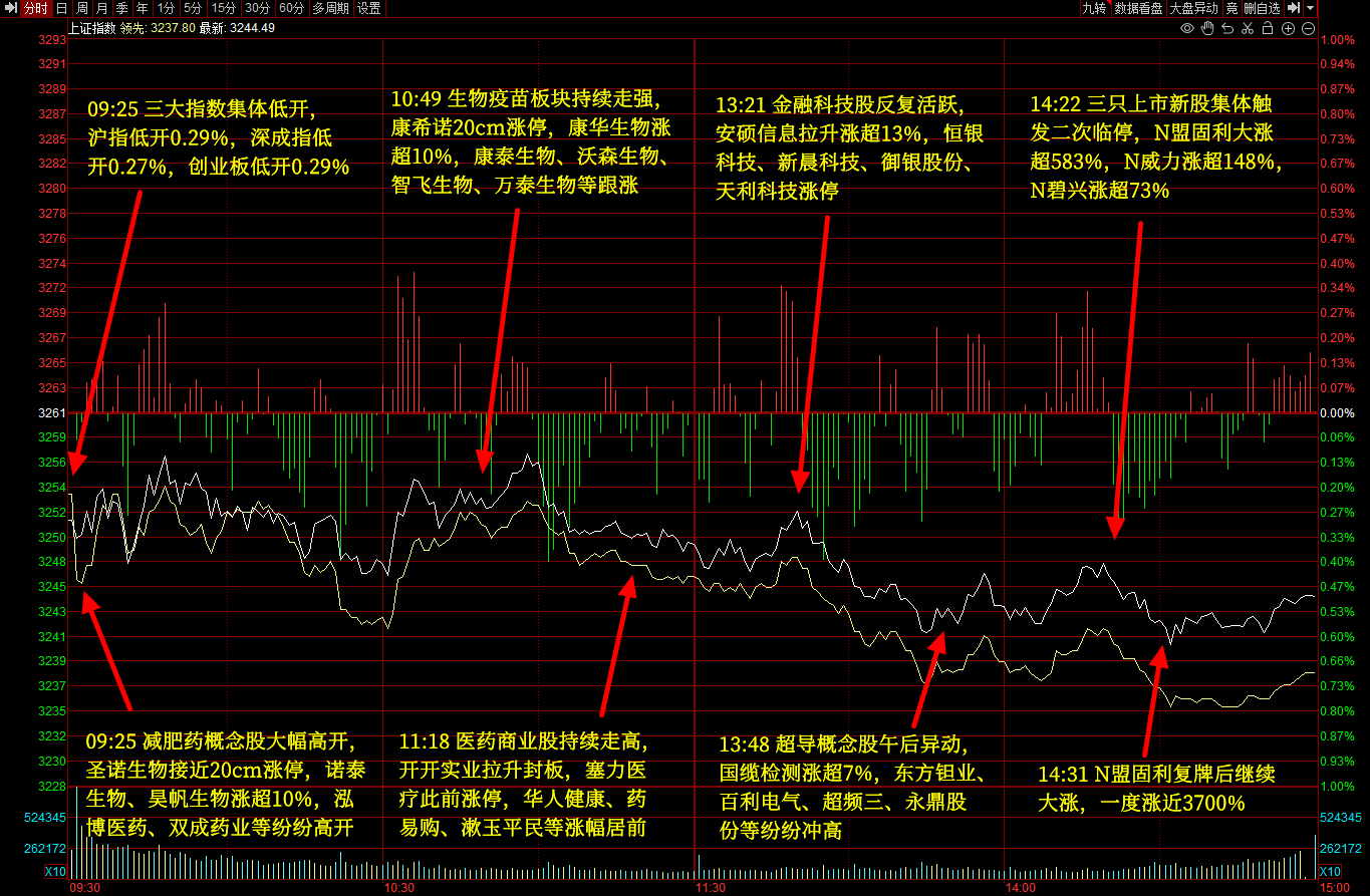 个股方面,互联网金融板块恒银科技4连板,医药股科源制药、华森制药和医药商业股塞力医疗2连板。另外三只昨日连板股均晋级失败。今日上市的三家新股尾盘集体飙升,成为最大亮点,其中N盟固利盘中最高涨近37倍,创出注册制以来新股上市首日最大涨幅。