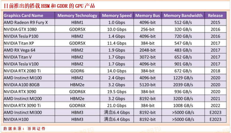 美光科技走得较慢,于2020年7月宣布大规模量产HBM2E,HBM3也仍作为其产品线在持续研发之中。