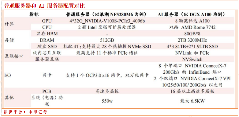 从硬件角度来看,与传统服务器相比,AI 服务器通常配备高性能的 GPU 或 TPU 加速器,大容量显存及存储器,兼有较多的 PCIe 显示设备作为外设,以实现图像识别及人工智能学习等功能,以实现更快、更高效的数据处理和计算能力,以满足人工智能等大数据应用的需求。