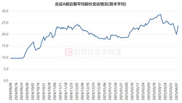 注:北证A股近期平均股价变动情况(截至4月9日数据)