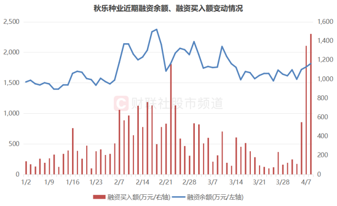 注:秋乐种业近期融资余额、融资买入额变动情况(截至4月8日数据)
