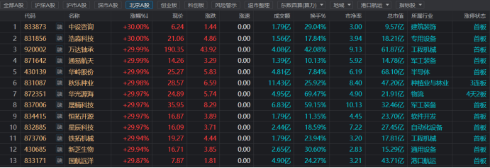 “30cm”三连板!北证热股集体狂飙