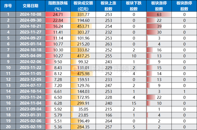 从指数层面来看,北证50今日收涨近10.27%,为今年1月14日以来近3个月最大单日涨幅。从历史行情上看,北证50指数罕有超10%涨幅显现,截至今日数据,其累计共有8次单日涨幅在10%以上,其中,在去年10月8日、9月30日、10月21日,其分别录得24.71%、22.84%、16.24%的单日涨幅,而今日的10.27%涨幅规模位居历史第8位。