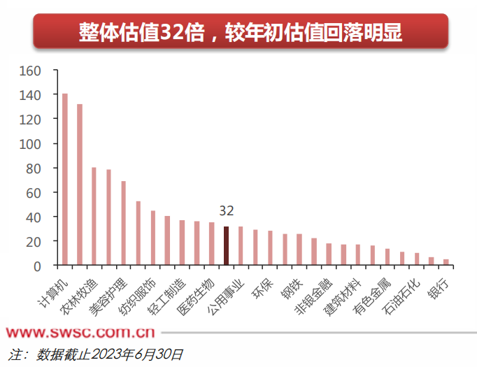 与此同时,行业估值出现明显回落,整体估值32倍。