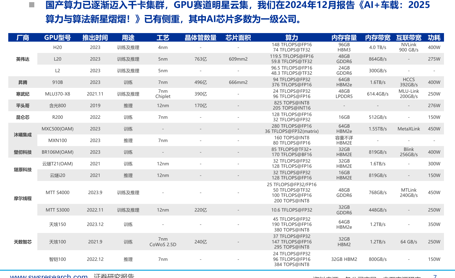 华为下一代芯片(可能命名为910x)将支持FP8精度,预计第四季度送测厂商。当前910B库存积压,主要用于推理而非训练。寒武纪690、摩尔线程S5000等国产芯片已支持FP8,但华为生态软件适配更优。国产GPU架构自主可控问题:计算公司公告称“力争解决”,实际未完全自主(采用Imagination IP)。
