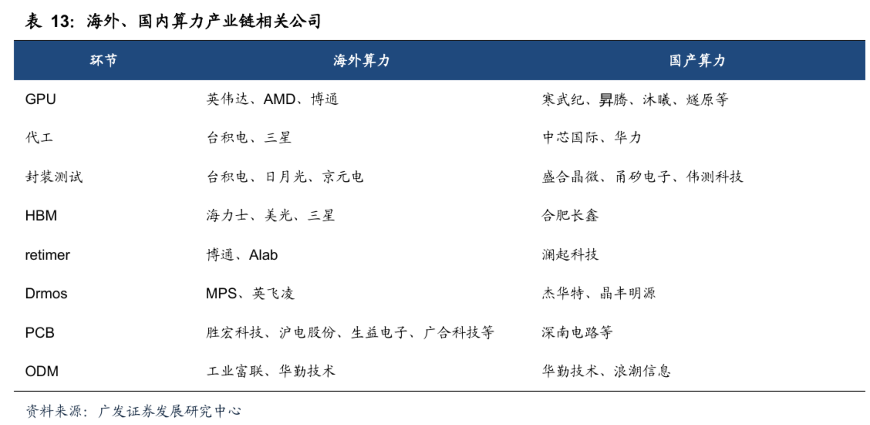 1)国产算力:寒武纪、海光信息、龙芯中科、中兴通讯(组织优化)、中芯国际(14nm独家产能)、华为系(升腾下一代芯片,等)。