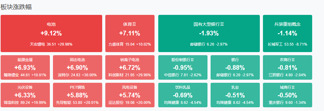 收评:创业板指反包大涨6.55% 固态电池概念股集体爆发