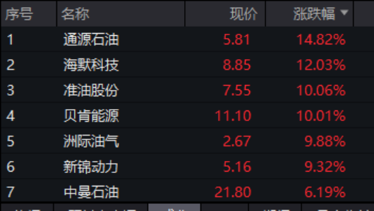 通源石油一度触及“20cm”涨停,准油股份、贝肯能源、洲际油气、和顺石油等多股盘中涨停。