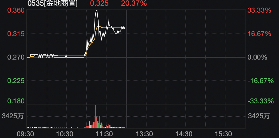 港股内房股异动则更为显著。金辉控股盘中拉涨,最高涨幅达88.62%;金地商置、建业地产盘中涨幅超30%。