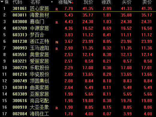 家居用品板块异动拉升,匠心家居涨近8%,喜临门、中源家居、梦百合、趣睡科技等拉升。