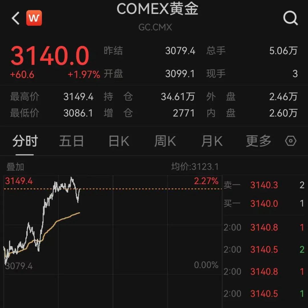 首先是金价 ,截至发稿,COMEX黄金涨近2%,伦敦金涨超1%。