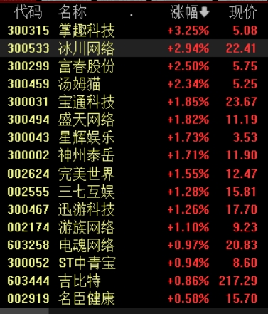 4月22日,游戏板块开盘后震荡拉升,截至发稿,掌趣科技涨超3%,冰川网络、富春股份、完美世界等跟涨。