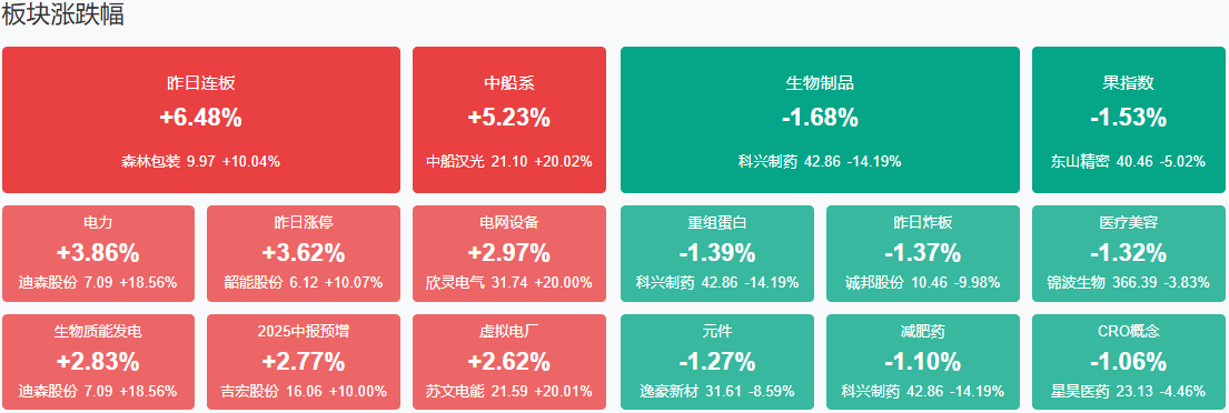 板块方面,电力、电网设备、稳定币、房地产等板块涨幅居前,生物制品、PCB、CPO、创新药等板块跌幅居前。截至收盘,沪指涨0.02%,深成指跌0.7%,创业板指跌1.21%。
