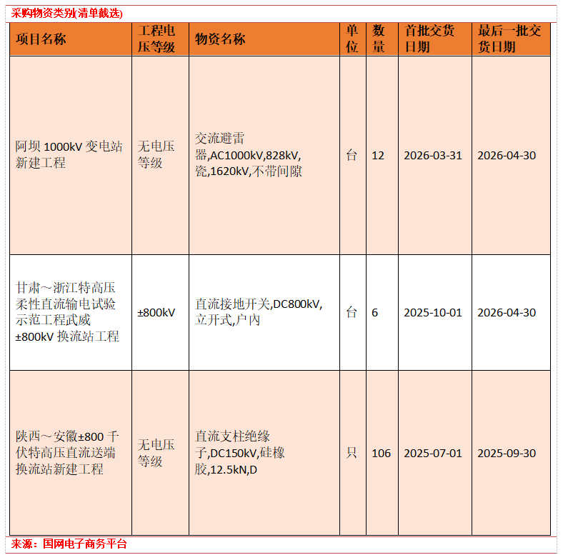 3)陕北-安徽额定电压为±800千伏、额定容量为800万千瓦,动态投资为205亿元;工程于今年1月开工建设,预计2026年初建成投运。