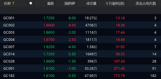 图:最新上交所国债逆回购价格(资料来源:Choice数据)