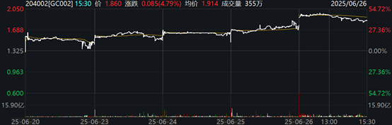 临近半年末、国债逆回购年化收益率飙升、今日盘中突破2%