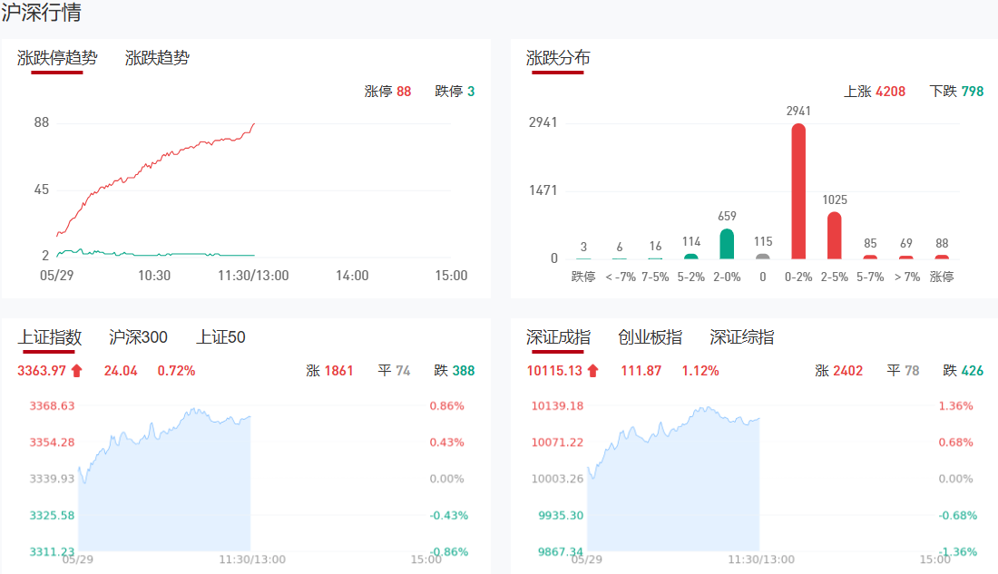 午评:创指半日涨1.16% 全场超4400只个股上涨