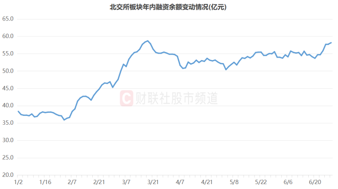 注:北交所板块年内融资余额变动情况(截至6月30日数据)