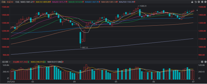 作为上半年涨幅(39.45%)领先的市场指数,北证50在7月首日(7月1日)的行情中依旧表现强势。截至今日收盘,其目前收盘点位已升至1457.07,较此前于今年5月12日录得的历史最高点(1500.31)仅差3个百分点的距离。从近1个月的行情上看,北证50指数整体保持区间震荡走势,期间多次跃升至前高附近,但均未能突破1500点这一关口。
