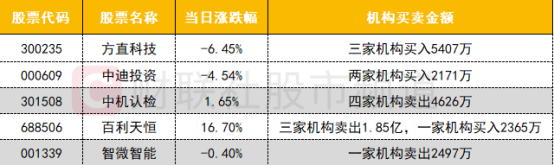 龙虎榜机构活跃度仍较为低迷,在线教育概念股方直科技获机构买入超5000万。