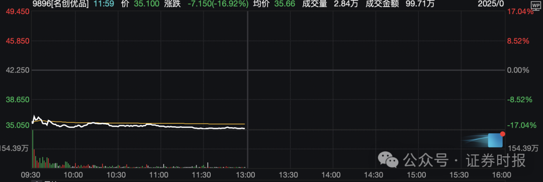 名创优品重挫,盘中跌幅一度超过17%,截至午间收盘跌16.92%。